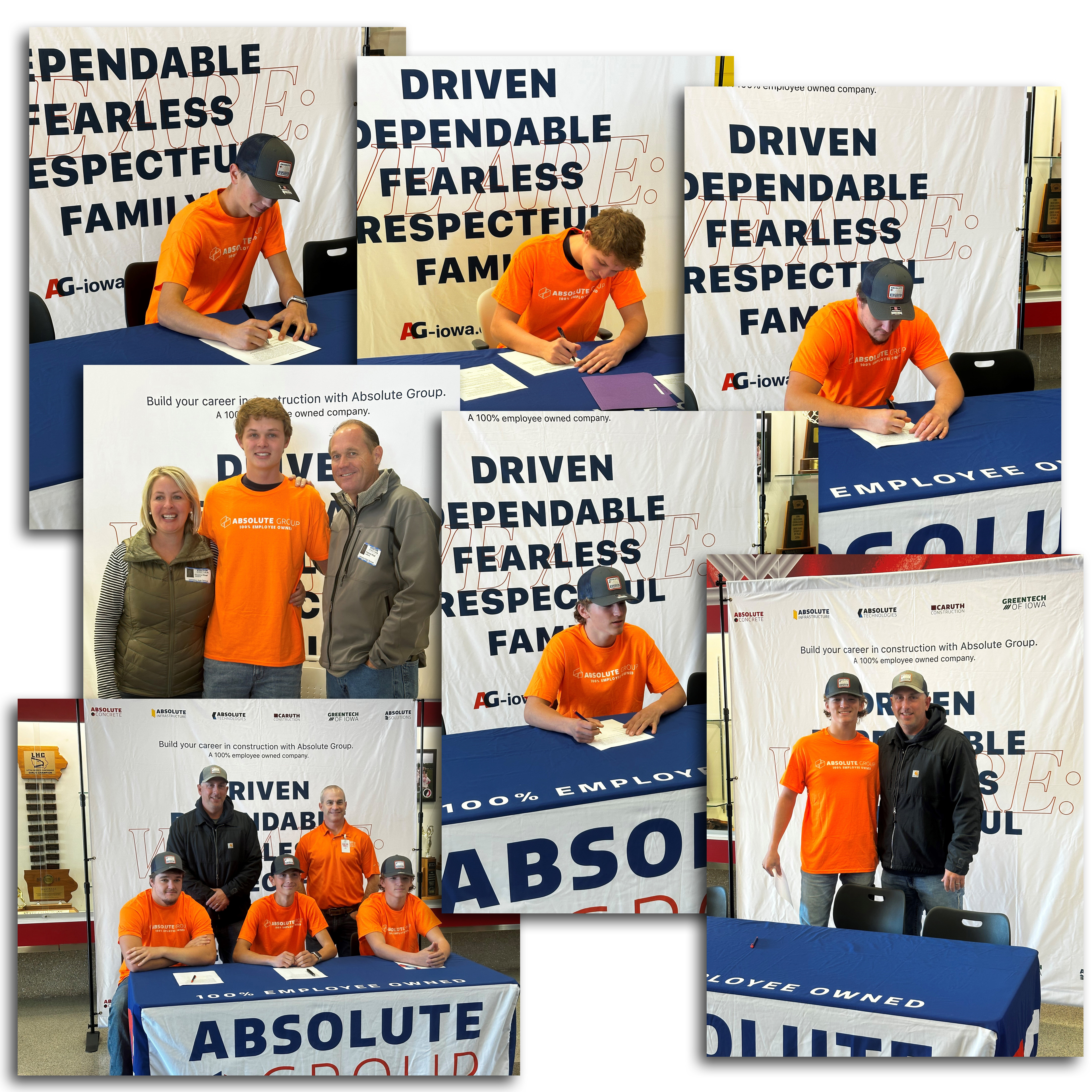 Absolute Group is proud to partner with area schools to provide trades-related education and experience to interested students. In the fall of 2022, we worked closely with Dallas Center-Grimes (DCG) and Johnston High Schools to develop a comprehensive program that allows students to gain experience in specialized concrete construction. These students are on a rotation of Absolute Group's service divisions learning valuable skills in commercial concrete and residential concrete construction, infrastructure services including heavy construction and underground utilities, and shop skills that ready them to be productive members of the workforce.